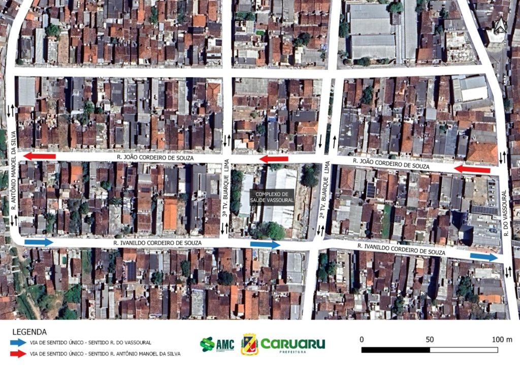 A partir de hoje (02) a rua João Cordeiro de Souza ficará com sentido único de circulação de veículos em direção à rua Antônio Manoel da Silva, e a rua Ivanildo Cordeiro de Souza passará a operar em sentido único, em direção à rua do Vassoural. De acordo com a Autarquia de Mobilidade de Caruaru (AMC), a intervenção visa garantir mais mobilidade urbana e agilizar o percurso da população que necessitar se dirigir ao Complexo de Saúde do Vassoural.