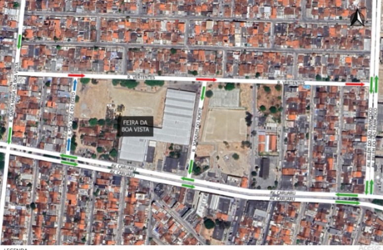 A partir de hoje (30), duas vias no entorno da Feira da Boa Vista passam a ter sentido único de circulação de veículos, conforme informou a Autarquia de Mobilidade de Caruaru (AMC). A mudança afeta a Rua São José do Egito, que tem sentido único de circulação em direção à Rua Vertentes, e a Rua Vertentes, que passa a operar em sentido único em direção à Avenida Belém de São Francisco.