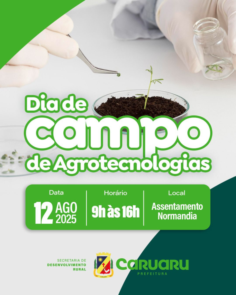 A Secretaria de Desenvolvimento Rural de Caruaru, realizará na próxima terça-feira (12) o Dia de Campo de Agrotecnologias, no Assentamento Normandia, às margens da BR-104, das 8h às 16h. O evento tem como objetivo promover a inovação no campo, fortalecer a agricultura familiar e incentivar práticas sustentáveis com foco no desenvolvimento regional.