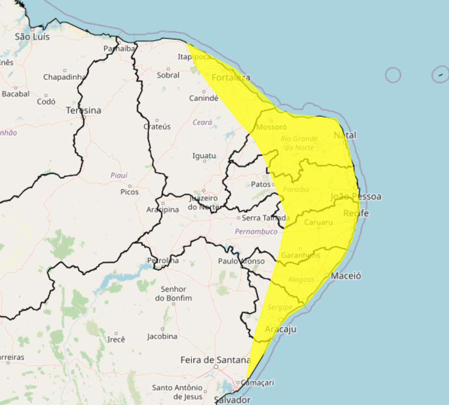 Além da Apac, o Instituto Nacional de Meteorologia (Inmet) também emitiu um alerta amarelo válido durante toda esta sexta (27) para a Região Metropolitana do Recife, Mata, Agreste e Sertão de Pernambuco, além de outros estados do Nordeste.